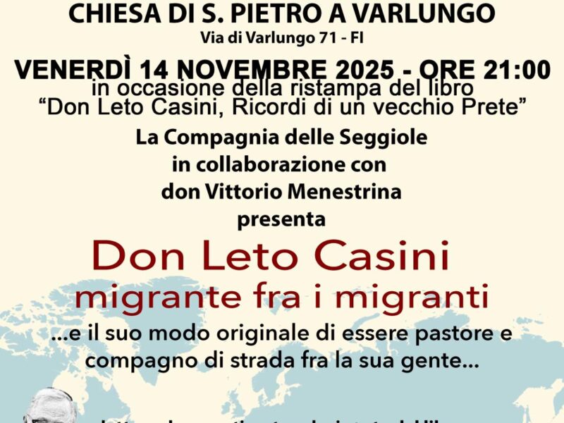 In occasione della nuova edizione di Ricordi di un vecchio prete, la Compagnia delle Seggiole presenta Don Leto Casini, migrante tra i migranti: letture drammatizzate che attraversano la vita di un …