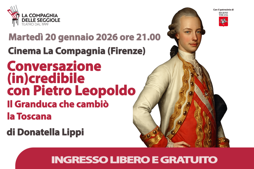 La Compagnia delle Seggiole presenta Conversazione (in)credibile con Pietro Leopoldo, lettura drammatizzata di Donatella Lippi, a cura di Sabrina Tinalli, martedì 20 gennaio alle ore 21.00 presso il Teatro della Compagnia di Firenze (Via Camillo Cavour, 50/R – 50121 FIRENZE).