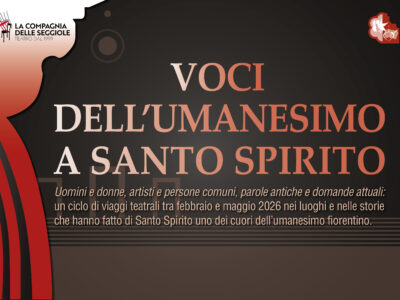 Nell’ambito dei Convegni di Santo Spirito dedicati all’Umanesimo, la Compagnia delle Seggiole propone per il 2026 tre spettacoli teatrali ambientati negli spazi monumentali della Basilica e del Chiostro. Un percorso che intreccia memoria, architettura e riflessione spirituale, trasformando il teatro in esperienza viva dentro uno dei luoghi simbolo del Rinascimento fiorentino.