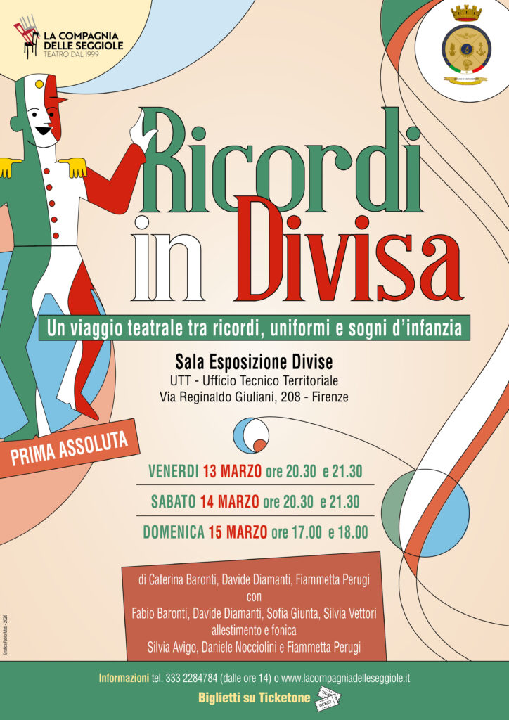 La Compagnia delle Seggiole è lieta di presentare in prima assoluta un nuovo viaggio teatrale nella Sala delle Esposizioni delle Divise dell’Ufficio Tecnico Territoriale dell’Esercito di Firenze in via Reginaldo Giuliani.